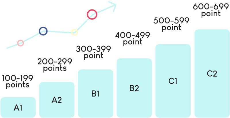 - A1 (100-199 points) : Capacité à comprendre et utiliser des expressions quotidiennes et des phrases très simples.